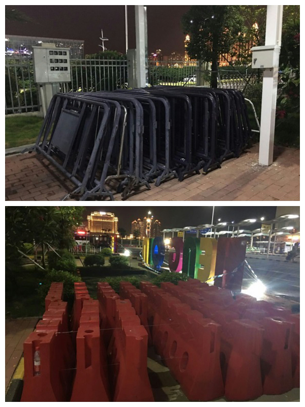 (為預(yù)防交通癱瘓準(zhǔn)備鐵馬和水馬,地點(diǎn):橫琴口岸)