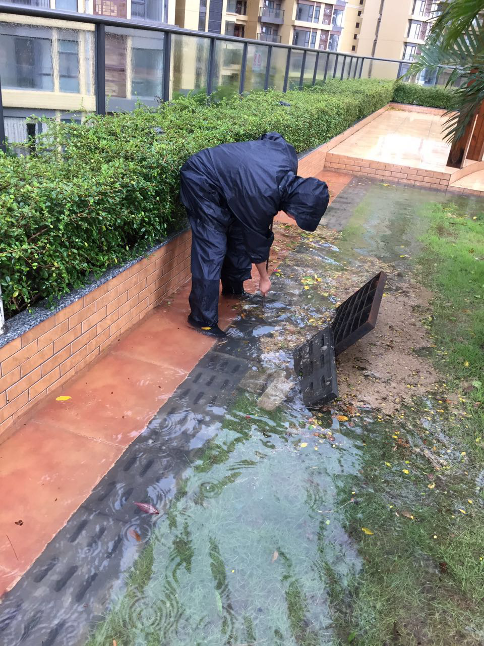 (及時(shí)疏通雨水,確保安全,地點(diǎn):新家園)
