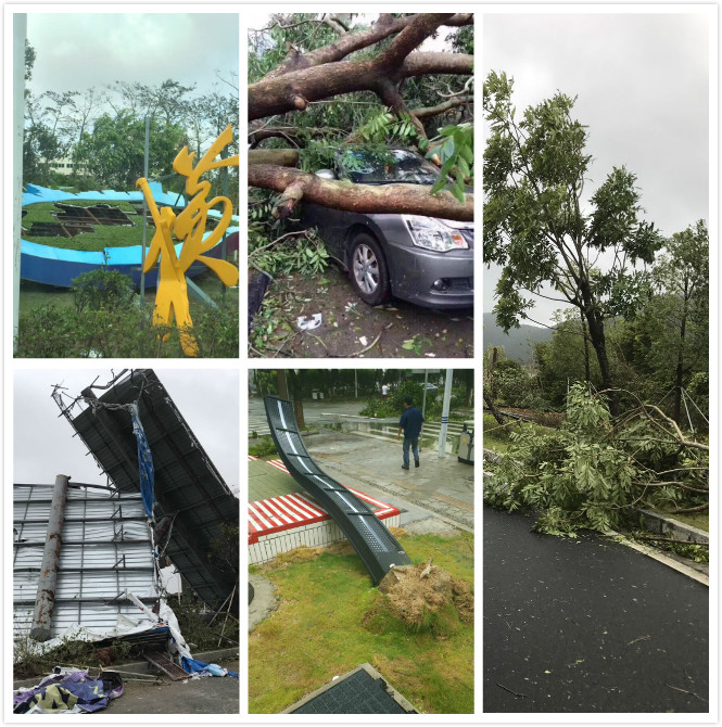 8月23日中午,臺風“天鴿”在珠海南部沿海登陸,登陸時中心附近最大風力高達15級,珠海遭遇了近53年來最強臺風襲擊。27日,臺風“帕卡”從珠海沿海掠過,珠海再次遭受狂風暴雨侵襲。