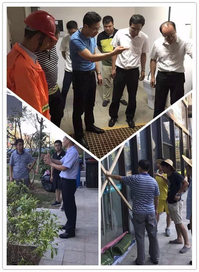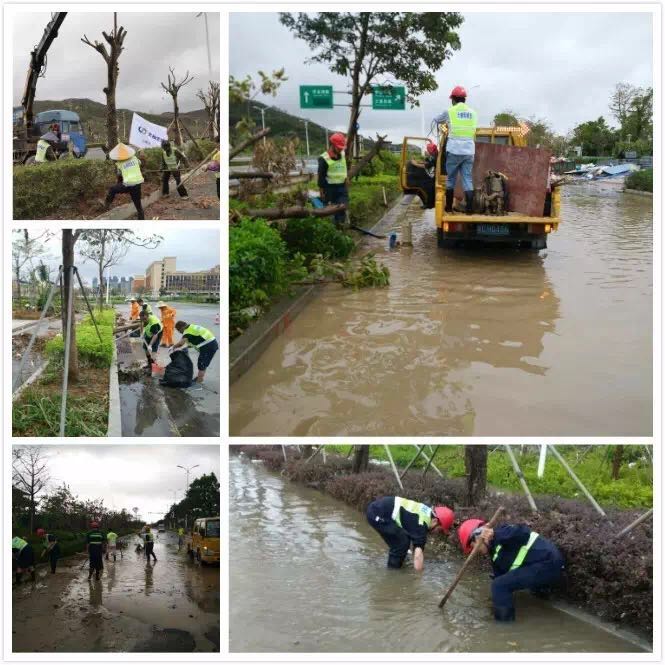 臺風登陸前后,我司市政各業(yè)務中心、物業(yè)各項目全體員工全天候堅守崗位。