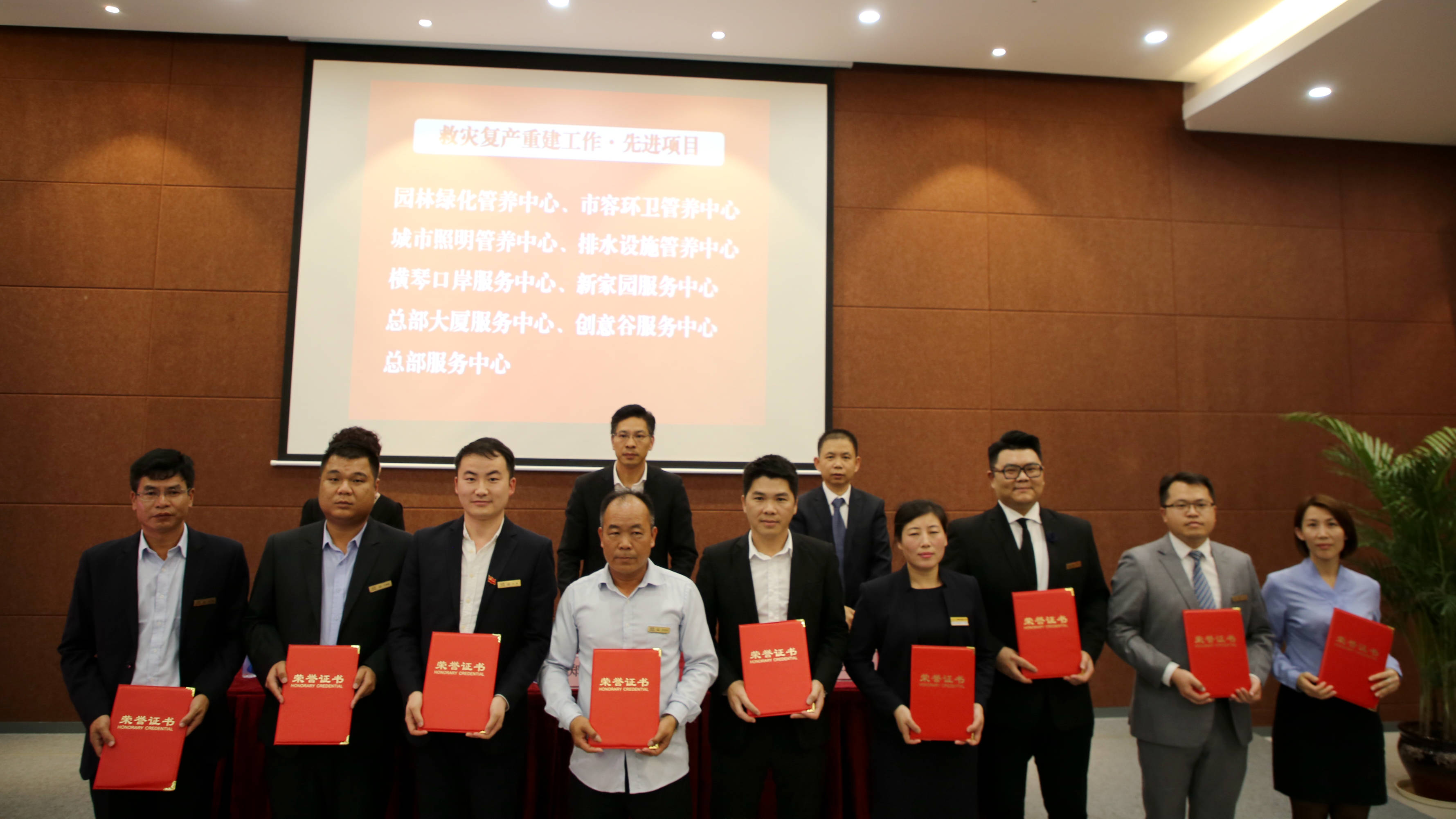 12月1日,大橫琴城資公司隆重舉行2017年抗擊臺風“天鴿”和“帕卡”救災復產重建工作總結推進大會,對在臺風救災復產重建工作中表現突出的先進部門、先進項目和先進個人進行表彰。