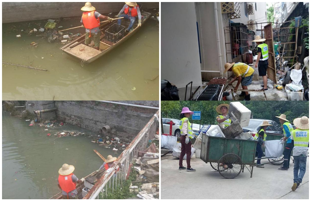 (作業(yè)人員清理河道、道路及村民住宅過道垃圾)