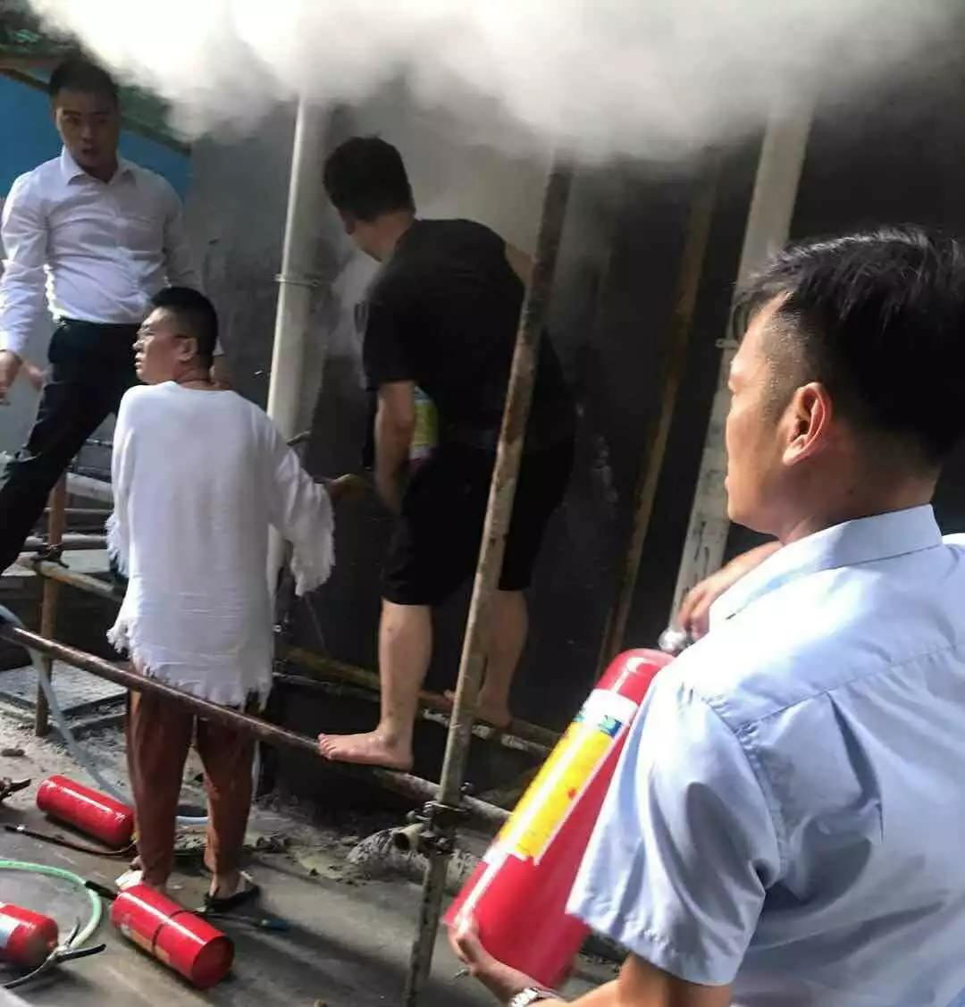 起火的是民宿一樓儲存布草的雜物房,鐘舜祥等人到達的時候,現場已有5、6名民宿人員正嘗試使用水龍頭滅火。確認起火地點沒有人員被困后,接受過消防訓練的鐘舜祥等人,連同村長、書記和附近居民一起使用滅火筒參與滅火。謝曉娟在旁組織現場秩序。5點17分消防車到達時,鐘舜祥等人用了將近二三十個滅火筒,成功在20分鐘內控制住了火勢,沒有進一步往民房密集的周圍蔓延。