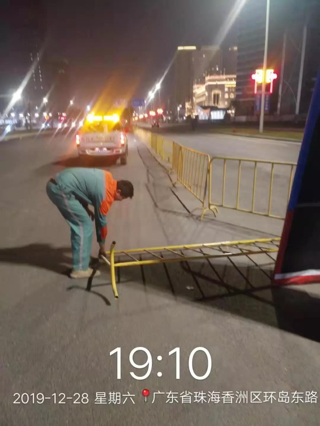 大橫琴城資對馬拉松賽道沿線的各工地施工路口進行專項圍擋,共計出動車輛4臺、人員25人,使用圍擋水馬450余個。
