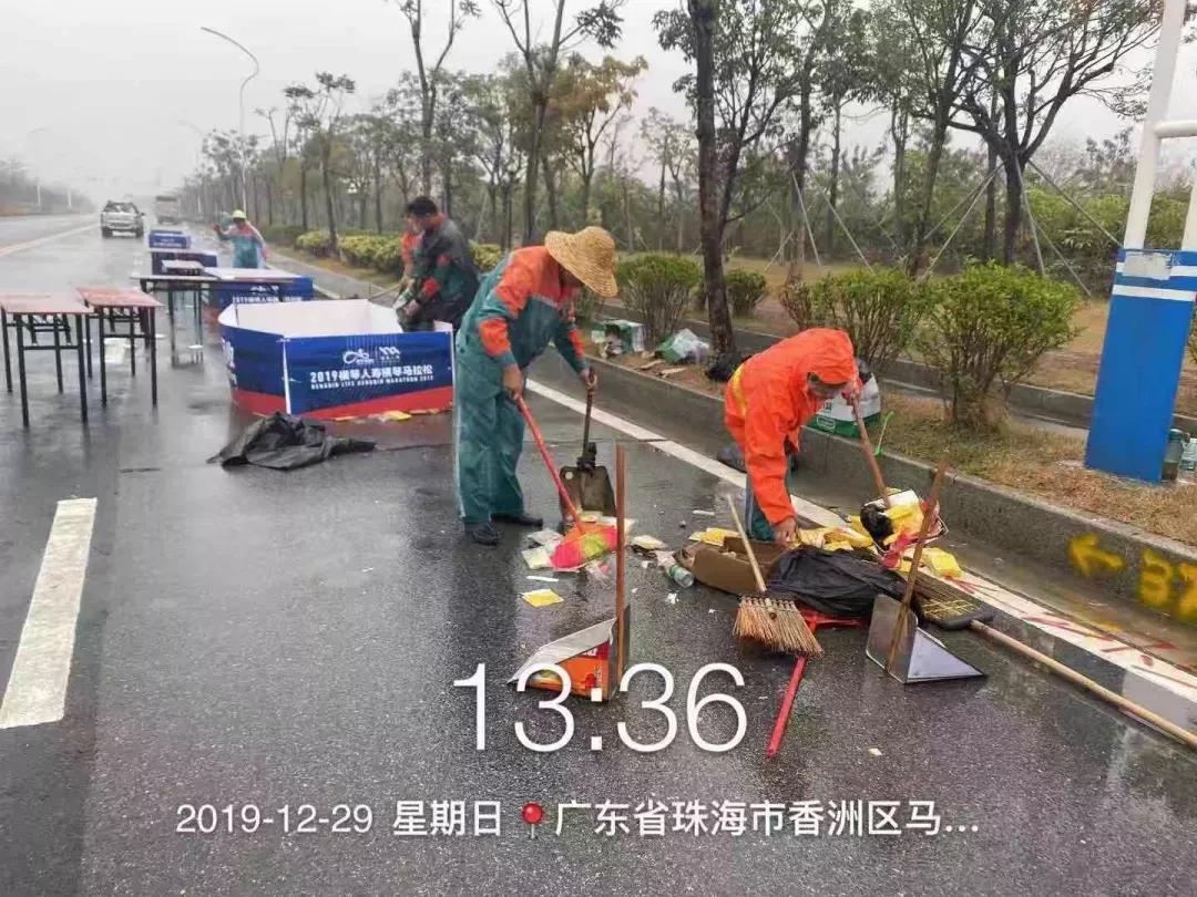 12月28-29日,大橫琴城資共出動環衛人員410人次,出動降塵車、清洗車、機掃車、平板車、路面養護車等408車次,對馬拉松賽道進行全線環衛大掃除工作,共計清理賽道及各路段周邊垃圾71噸,洗掃路面、灑水降塵用水3840噸,沖洗沿線所有路燈桿、護欄、公交候車亭,確保賽道環境干凈整潔。同時,在馬拉松賽事各活動站點關閉后,安排人員、車輛第一時間進行道路清障及沿線垃圾清理工作。