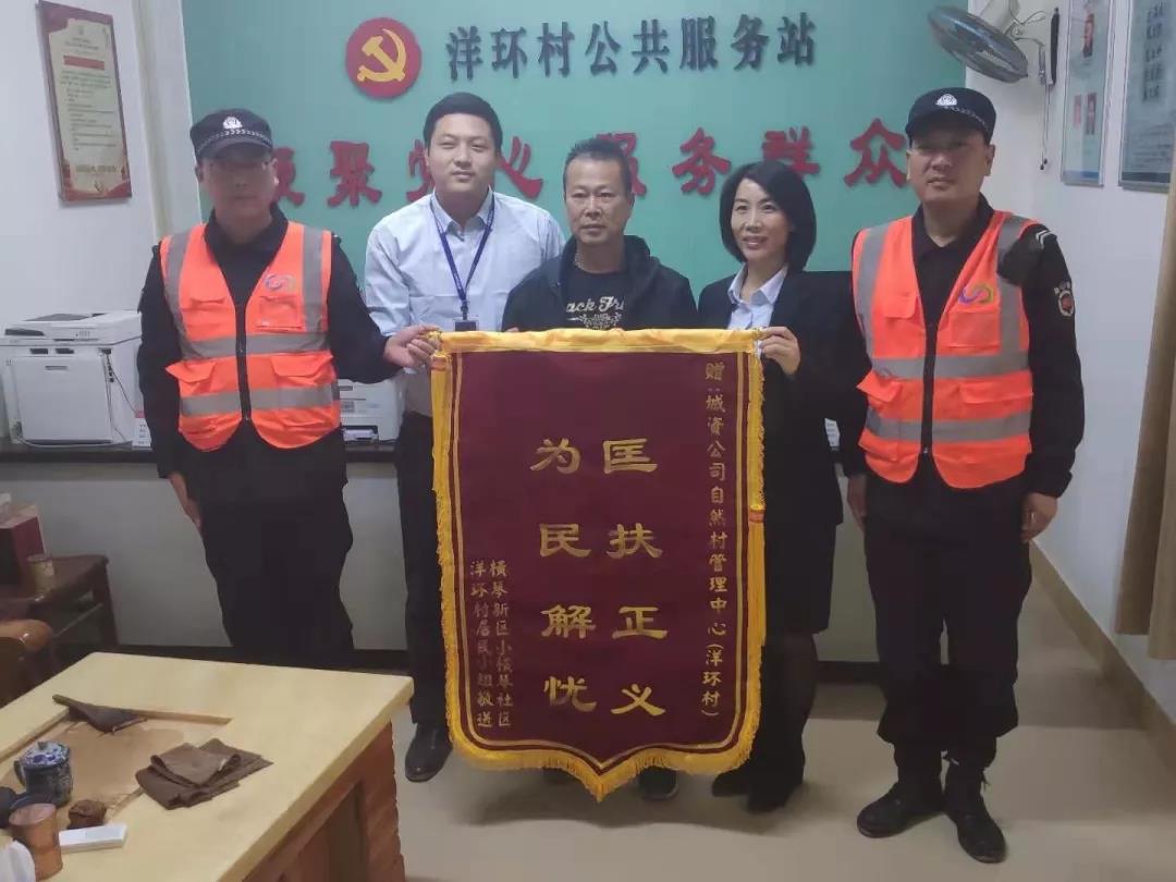 橫琴新區小橫琴社區、洋環村居民小組贈予自然村管理中心錦旗及表揚信