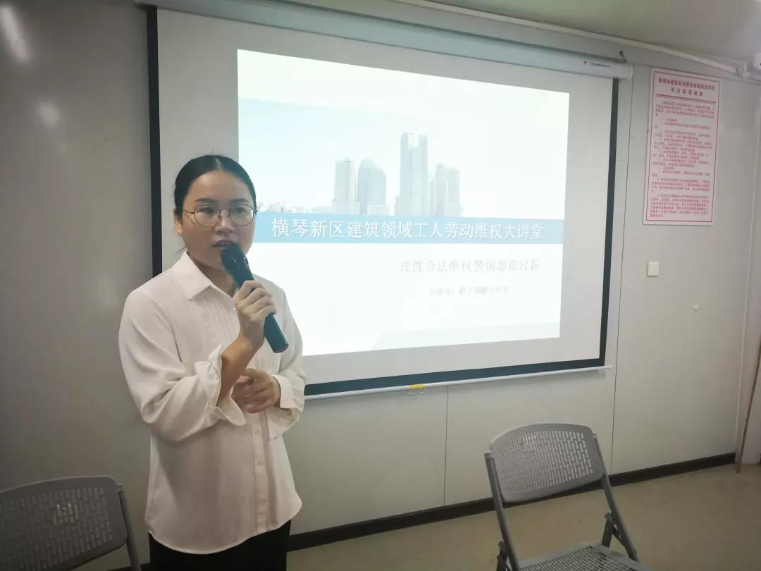 在橙子調解工作室,這樣斗智斗勇、軟磨硬泡的“追薪時刻”并不少見。為了幫助農民工解決實際困難,提升普法意識,調解工作室項目主管林硯文積極推動調解室在橫琴的農民工培訓學校里開展普法培訓,自2019年7月以來合計培訓了10場,參加人次超過1000人,覆蓋全島50%以上的工地企業。