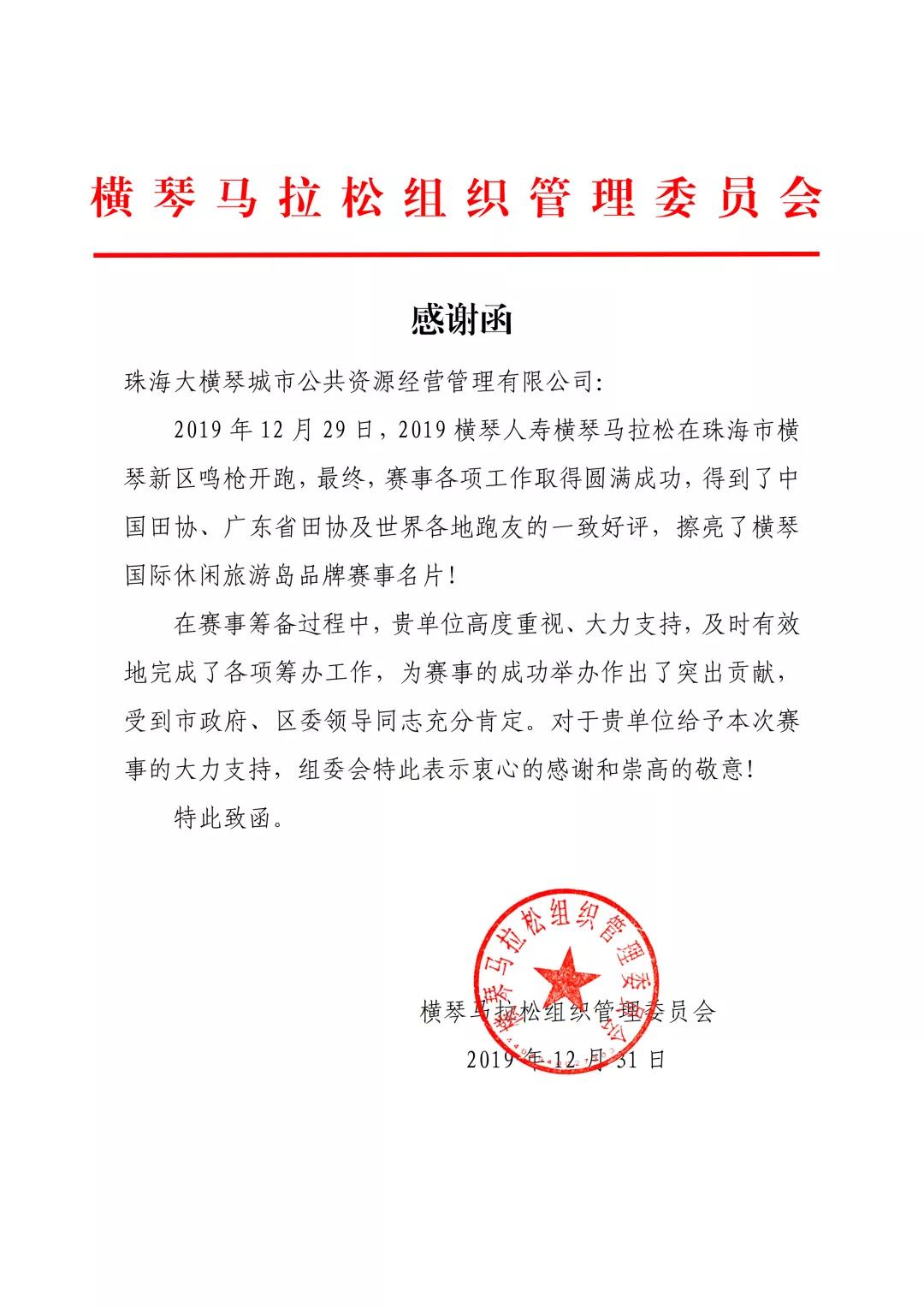橫琴海關就優質服務質量贈與二線通道管理中心錦旗及感謝信