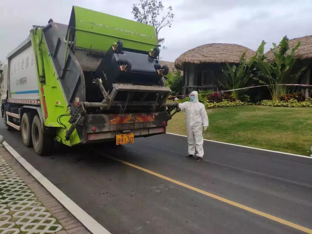 每天凌晨5點,當所有人還在夢中酣睡的時候,鄭飛已經從四塘村出發,到垃圾壓縮中轉站做體溫檢測,戴好口罩,穿戴好防護服、護目鏡,六點二十分準時出車到全島的自然村上收垃圾。3個隔離點的垃圾清運其實是在他們的日常工作中額外增加的任務。從村到隔離點,當他們把每個點的垃圾都收集好并做好消毒后,2個小時已經過去了。鄭飛隨即開車把垃圾運送到70公里外的政府指定垃圾處理廠進行處理。遇到垃圾車扎堆的時候,還要等候1-2小時才能把垃圾處理完,有時候回到橫琴已是下午1點多了。