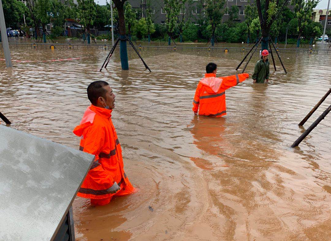 7月6日,武漢發布暴雨紅色預警,日降水量達到了472.3毫米。黃家湖大道的低洼位置,雨水無法及時排走,連續強降雨導致水位不斷增高,管廊外部道路有600米路段出現內澇,積水接近1米,沒過搶險人員的腰部,直逼綜合管廊監控中心及管廊3個通風口。