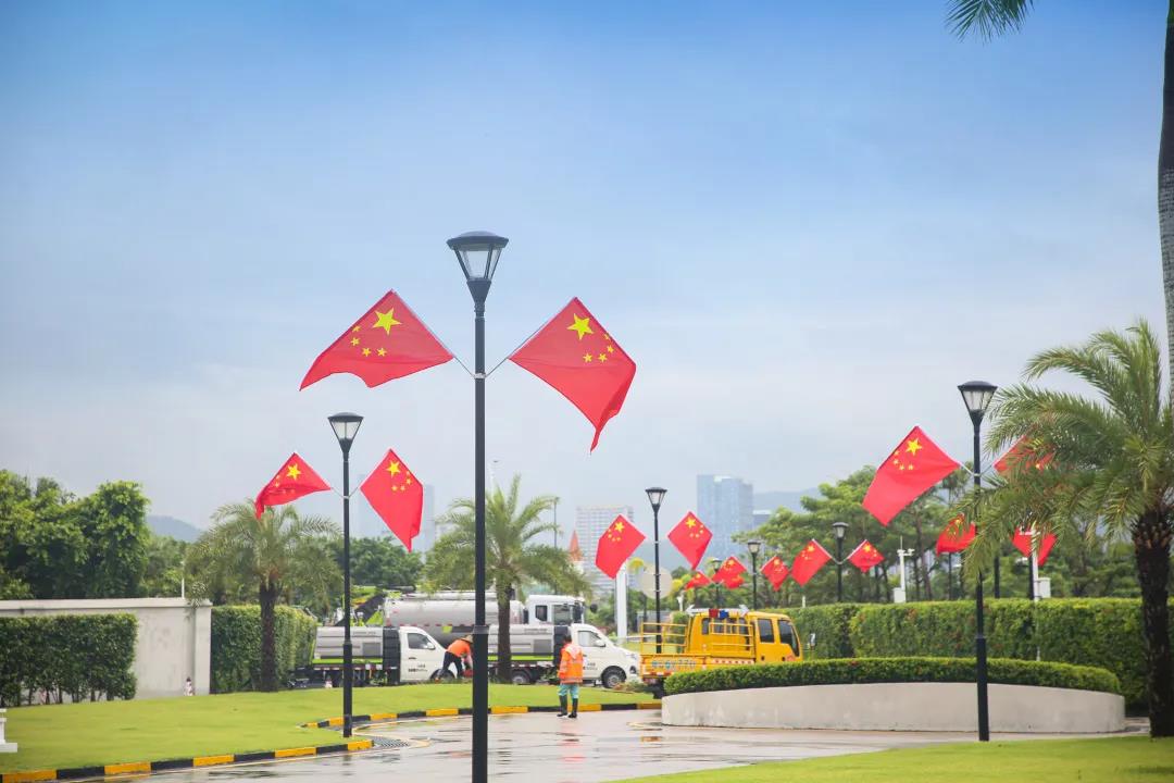 為賀國(guó)慶迎中秋,營(yíng)造舉國(guó)歡騰的節(jié)日氣氛,大橫琴城資的小伙伴們?nèi)找岳^夜地妝點(diǎn)橫琴。在橫琴大道、環(huán)島東路、橫琴大道、長(zhǎng)隆大道等地段懸掛國(guó)旗,并對(duì)橫琴新區(qū)重要節(jié)點(diǎn)的時(shí)花進(jìn)行更換,布置立體綠雕花壇。