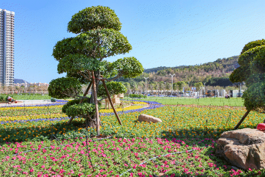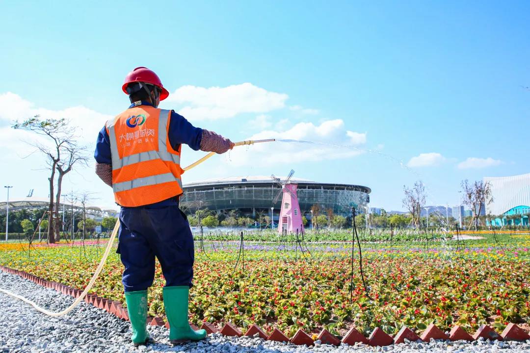 大橫琴城資以精細(xì)化管養(yǎng)為導(dǎo)向,在做好疫情防控的同時(shí),提前一個(gè)月育苗,并根據(jù)地形、風(fēng)向?qū)φw花海分布區(qū)域進(jìn)行景觀設(shè)計(jì),保障整體花海景觀效果。