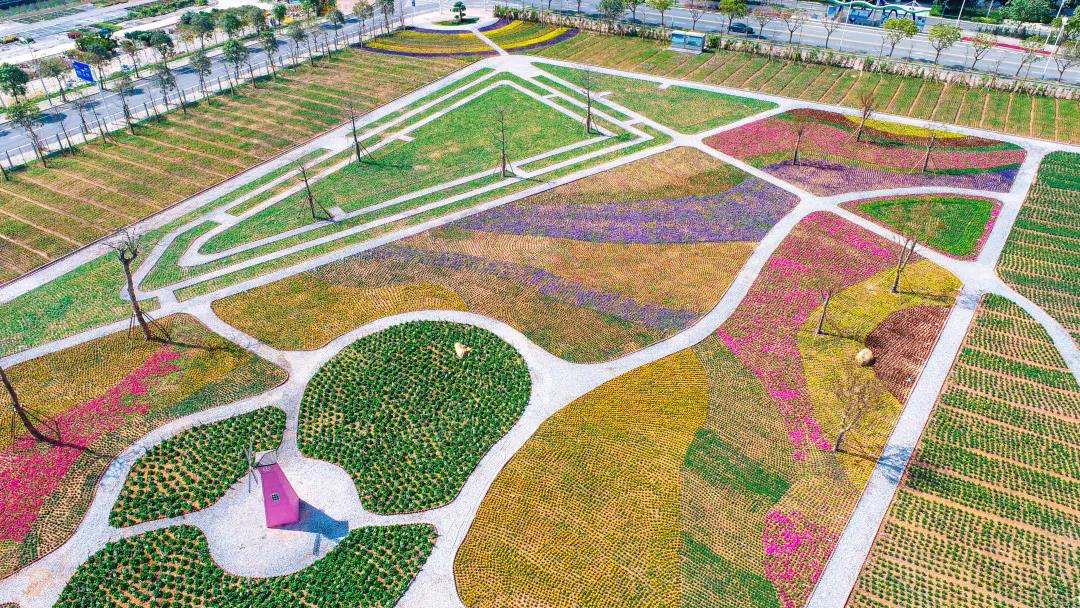 目前橫琴新區(qū)絕美的內(nèi)環(huán)壁式花海