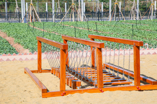 橙子開心農場內設蹺蹺板、長椅、秋千等娛樂設施
