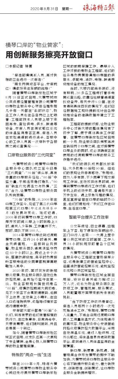 做好橫琴口岸的“物業管家”