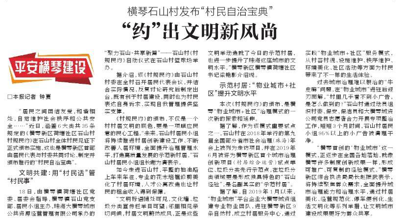 已成為橫琴新區一塊嶄新的“文明招牌”