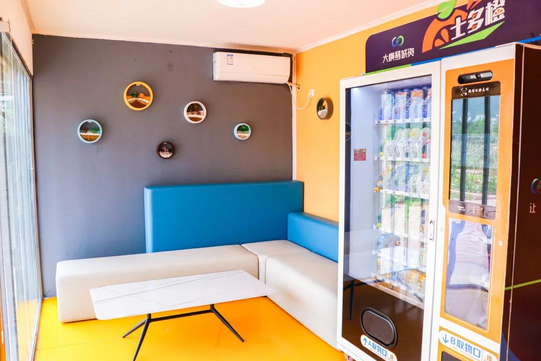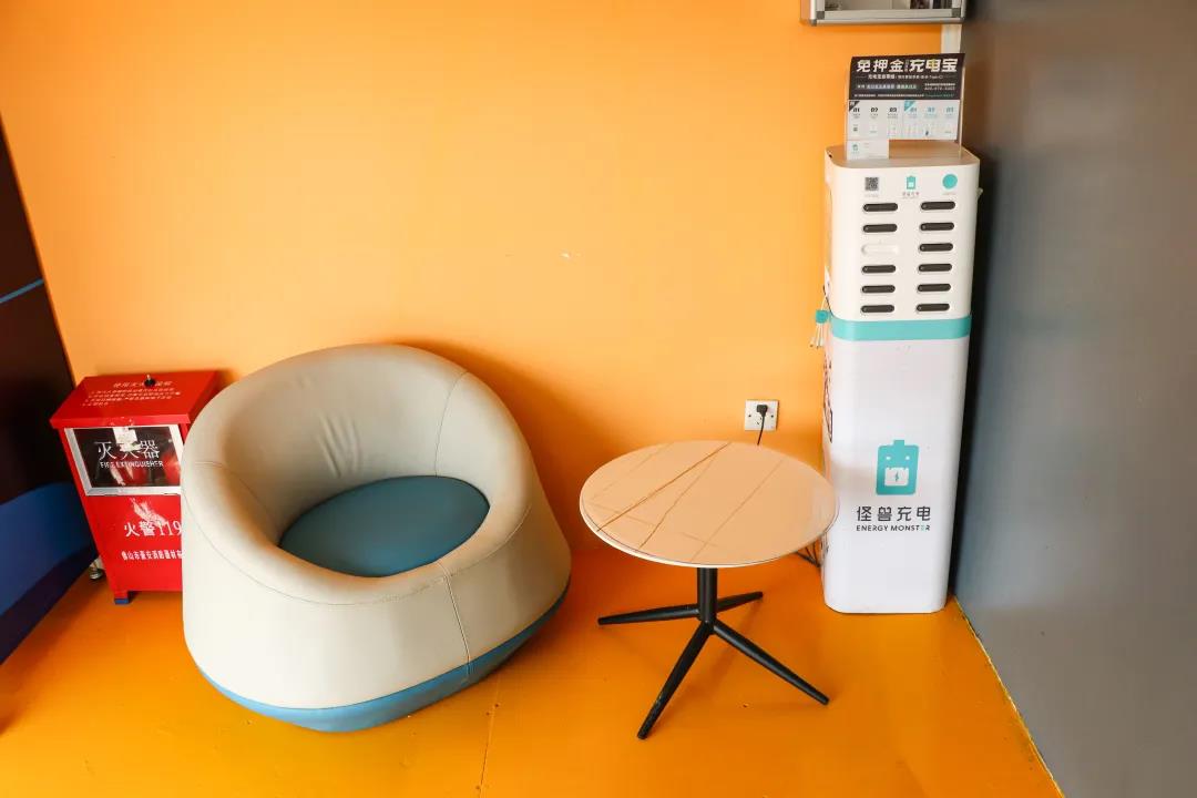 ▲橙子小屋內設有充電設備和可供市民休息的沙發