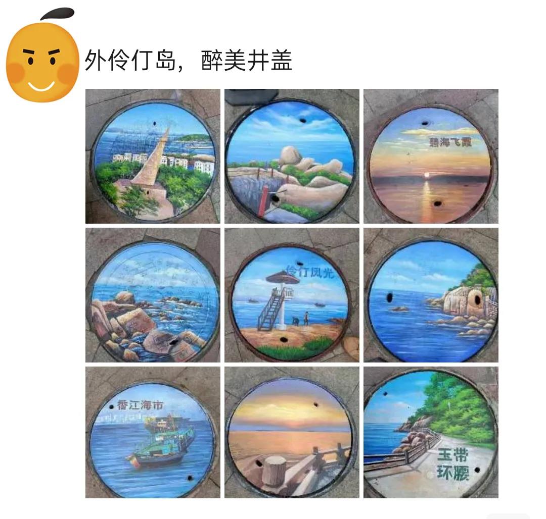創新性地將“伶仃八景”“伶仃三寶”和垃圾分類等元素融入到井蓋彩繪創作中,以小見大。目前全島60個井蓋彩繪已全部完成。小小的井蓋成為提升海島品質、展示海島特色的重要元素,成為海島的一道“微景觀”,吸引眾多游客駐足觀賞、拍照分享。