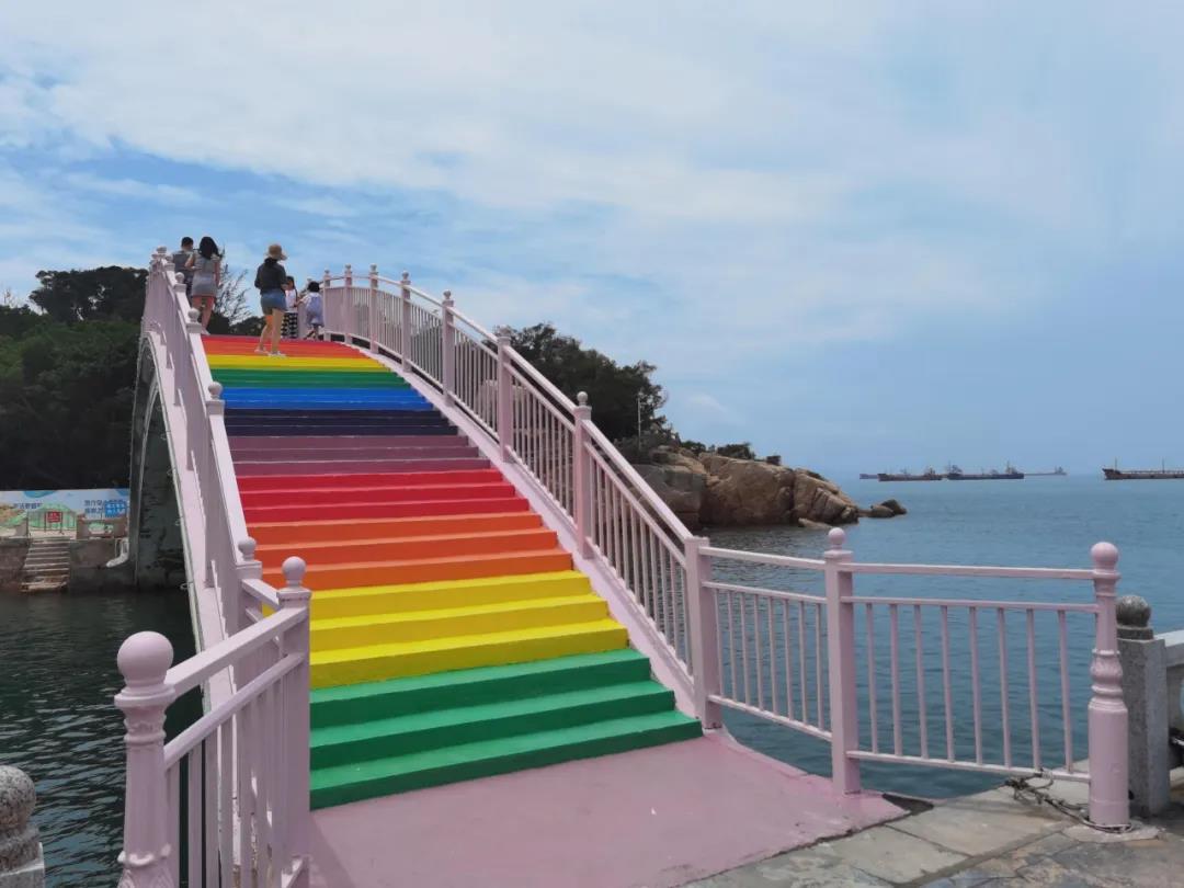 為了給五一高峰期上島的旅客一個“驚喜”,海島服務團隊馬不停蹄彩繪了一座“彩虹橋”,為旅客們的假期增添一抹絢爛的色彩。