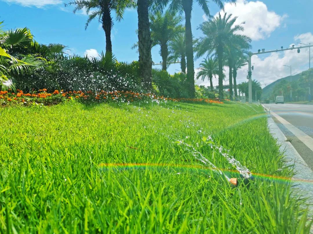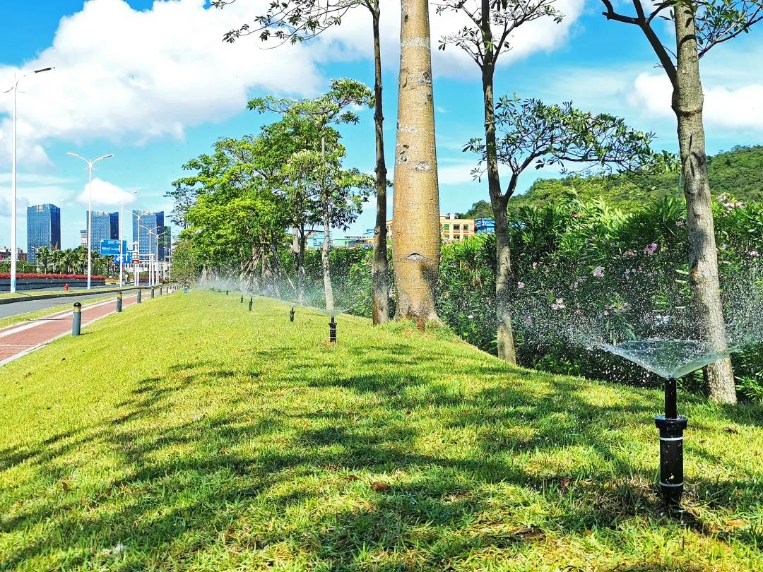 按照精細化的養護標準,每隔3米或6米設一個噴頭,每個噴頭的噴灑半徑約為5米,單個噴頭噴灑面積可達25平方米,根據綠植的生長特性,在每天上午10點前和下午4點后各進行一次長達半小時的噴灑,在確保最大限度地做好養護的同時,也起到節約資源、生態環保的作用。