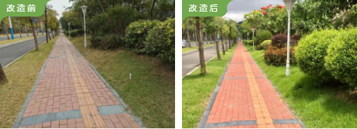 ▲長隆大道深井段人行道安裝噴淋系統前后的對比圖
