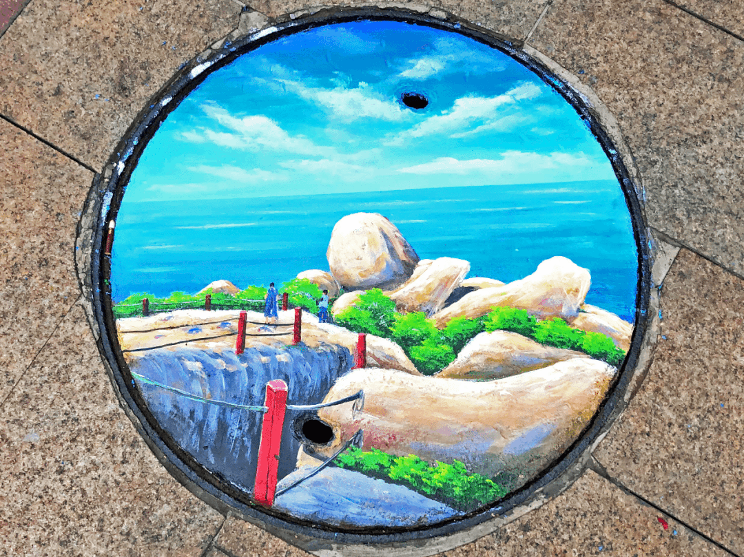 答:扮靚海島要精細管養,也要“井”上添花。大橫琴城資將生態文明旅游理念與藝術美感相結合,創新性地將“伶仃八景”“伶仃三寶”和垃圾分類等元素融入到井蓋彩繪創作中,讓小小的井蓋成為提升海島品質、展示海島特色的的一道“微景觀”。