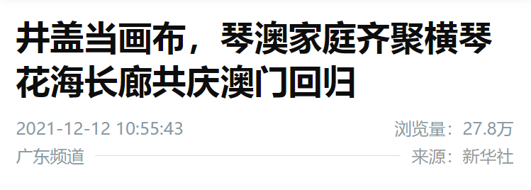 12月11日,30組琴澳家庭齊聚花海長廊,通過共繪井蓋的方式,向澳門回歸祖國22周年送上一份別具意義的“回歸禮物”。
