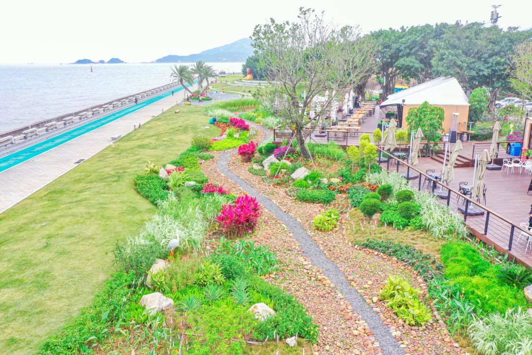 大橫琴城資合理運用原有的旱地景觀,搭配層次變化豐富的綠植花卉,打造熱帶風情精品小景,實現休閑旅游體驗與審美感知的融合統一。