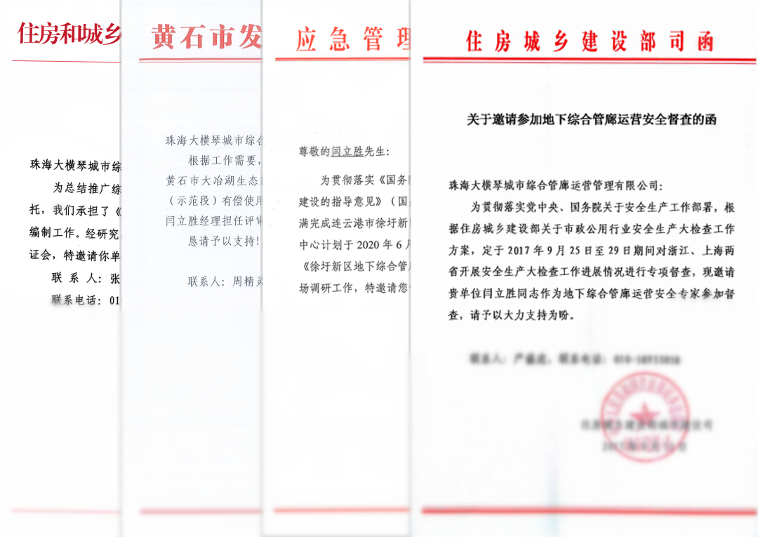 作為“質量人”和管廊“先行者”,閆立勝曾獲住房和城鄉建設部、十余個城市的建設部門、多地管廊建設及運營單位等邀請,參與行業標準和項目的評審工作。