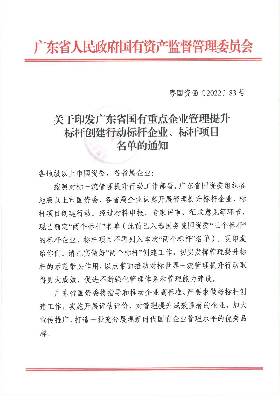 本次管理提升標桿創建行動是廣東省國資委按照對標世界一流管理提升行動總體安排,分層分類總結提煉管理提升成功經驗,打造管理提升樣板和尖兵的重要舉措。