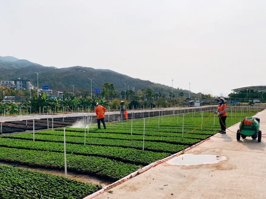 在橫琴粵澳深度合作區城市規劃和建設局的指導下,大橫琴城資依托精心打造的橙子生態苗圃,自主生產、自主養護了19萬株向日葵。