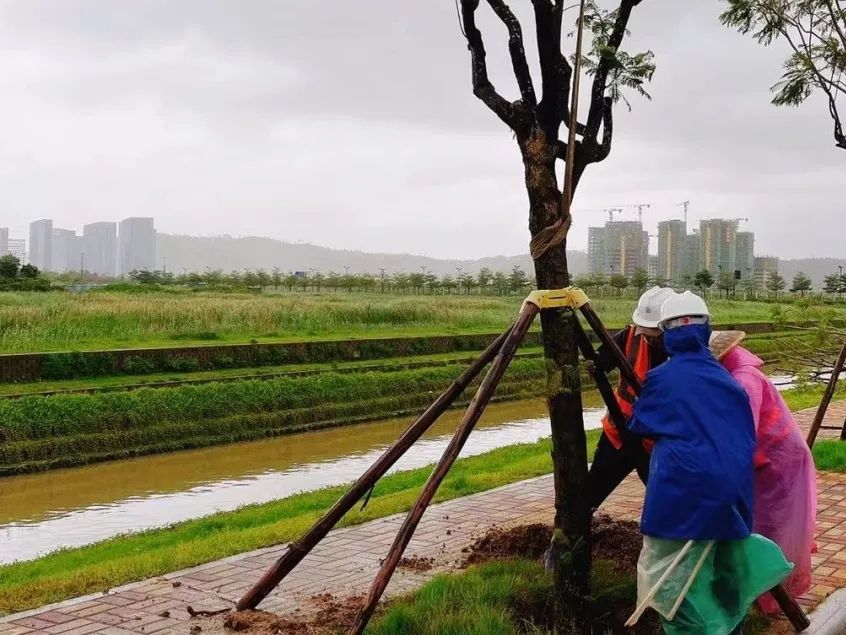 開展防臺風喬木支撐加固、維修及修枝工作,對易積水綠地增設排水管道,對易堆積垃圾的雨水篦子增設濾網并及時清理,防止垃圾堵塞