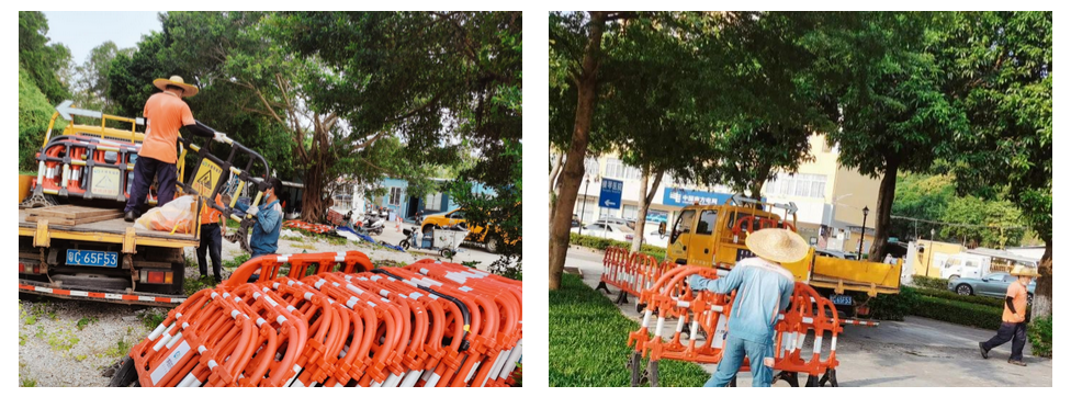 ▲對島上和村居各公共停車場出入口欄桿進行拆卸處理并做好防護