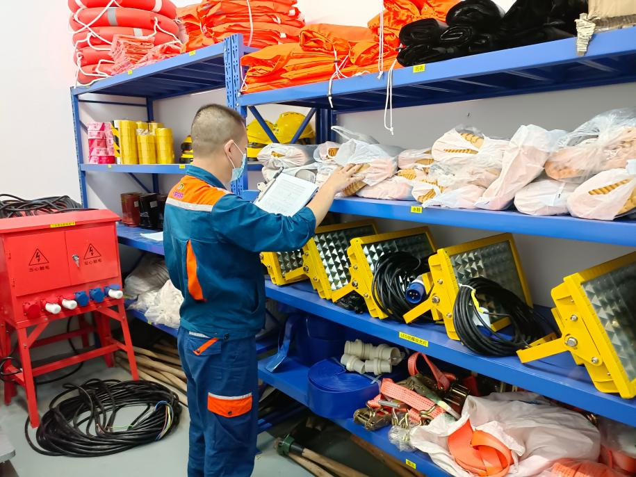 ▲各部門提前做好三防物資盤點,做好隨時支援島上搶險準備