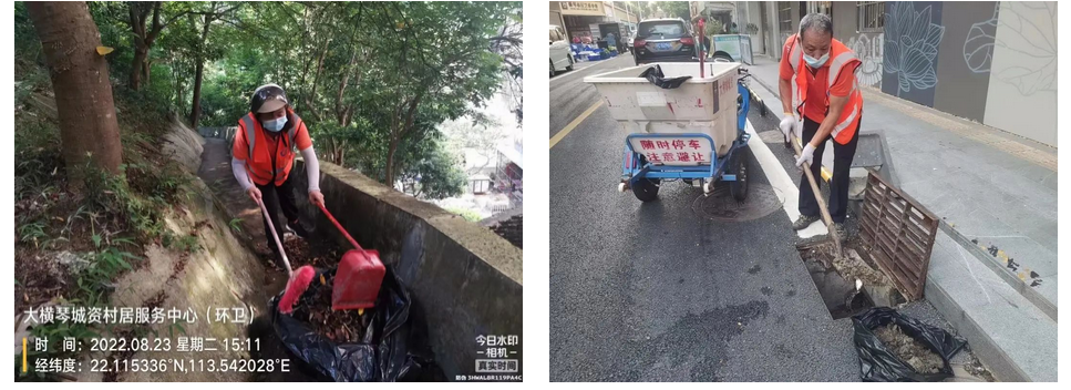 ▲清掏主干道、村居和重點區(qū)域雨水篦子,疏通下水井口,保障排水功能
