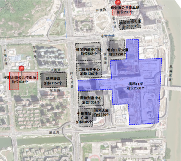 子期北道公共停車場位于橫琴口岸對面,勵駿龐都廣場西側(cè),距橫琴口岸步行距離1.7公里(約24分鐘),打車距離2.3公里(約6分鐘),居民、游客可就近停車進行購物、用餐、過關(guān)等活動。