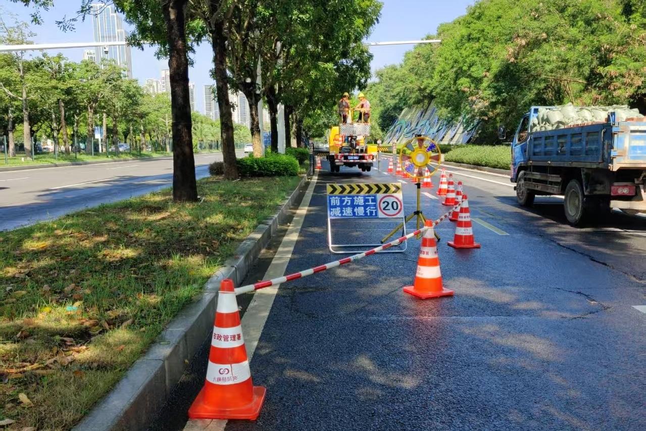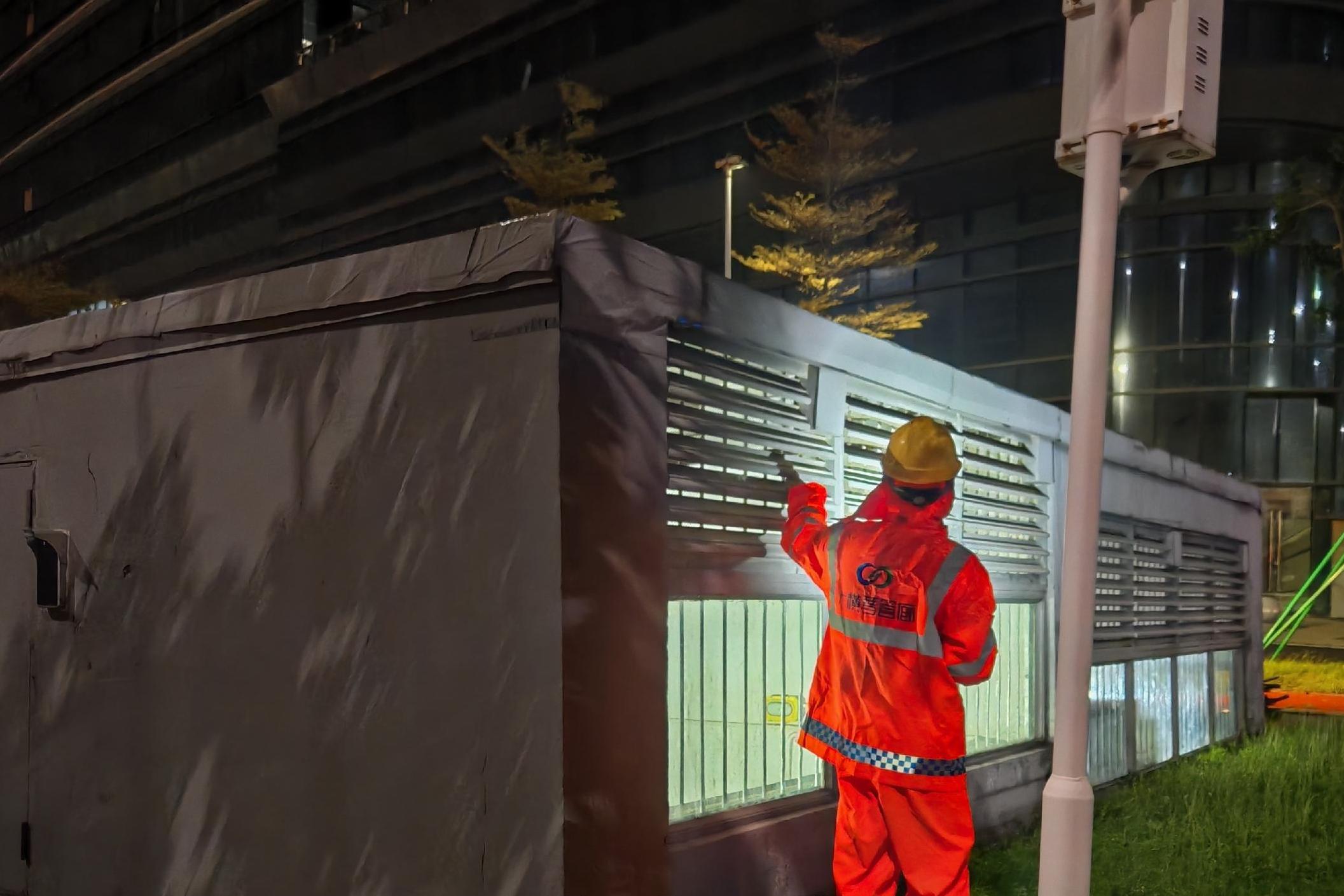 巡查全島路段市政照明設施,加固照明箱變控制箱門鎖,修復破損景觀燈,對全島泛光單體進行斷電。