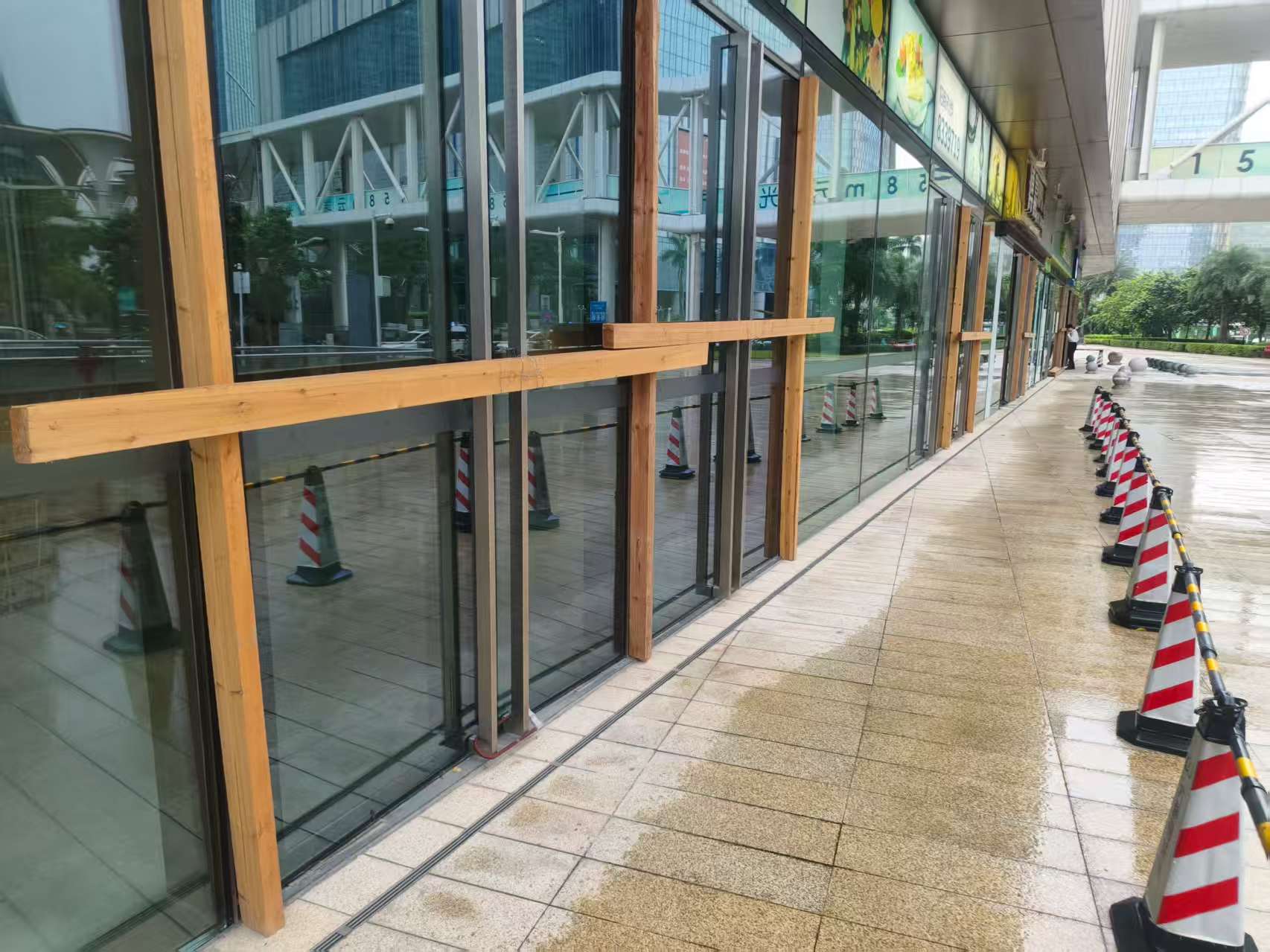 巡查在管的橫琴總部大廈、新家園小區、銀鑫花園小區等物業項目,及時布設防汛物資,并做好防風加固工作。