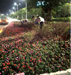 其中,在綠化方面,城資公司于2月29日連夜采購苗木,3月1日便投入皮卡車、農夫車6臺、灑水車5臺,安排50名工人加班至3月2日凌晨,對管養范圍內環島東路、長隆大道的綠化、綠化墻進行全面清潔、除雜草、修剪、澆水、多次降塵,對環島東交橫琴大道的中間綠化帶和渠化島內京師園林改造遺留枯死的龍船花進行更換,將其更換成勒杜娟,對南山咀綠化墻再次補苗美化,共更換補植800余平米。3月2日早6點,再次對重點路段綠化帶進行清理、降塵。