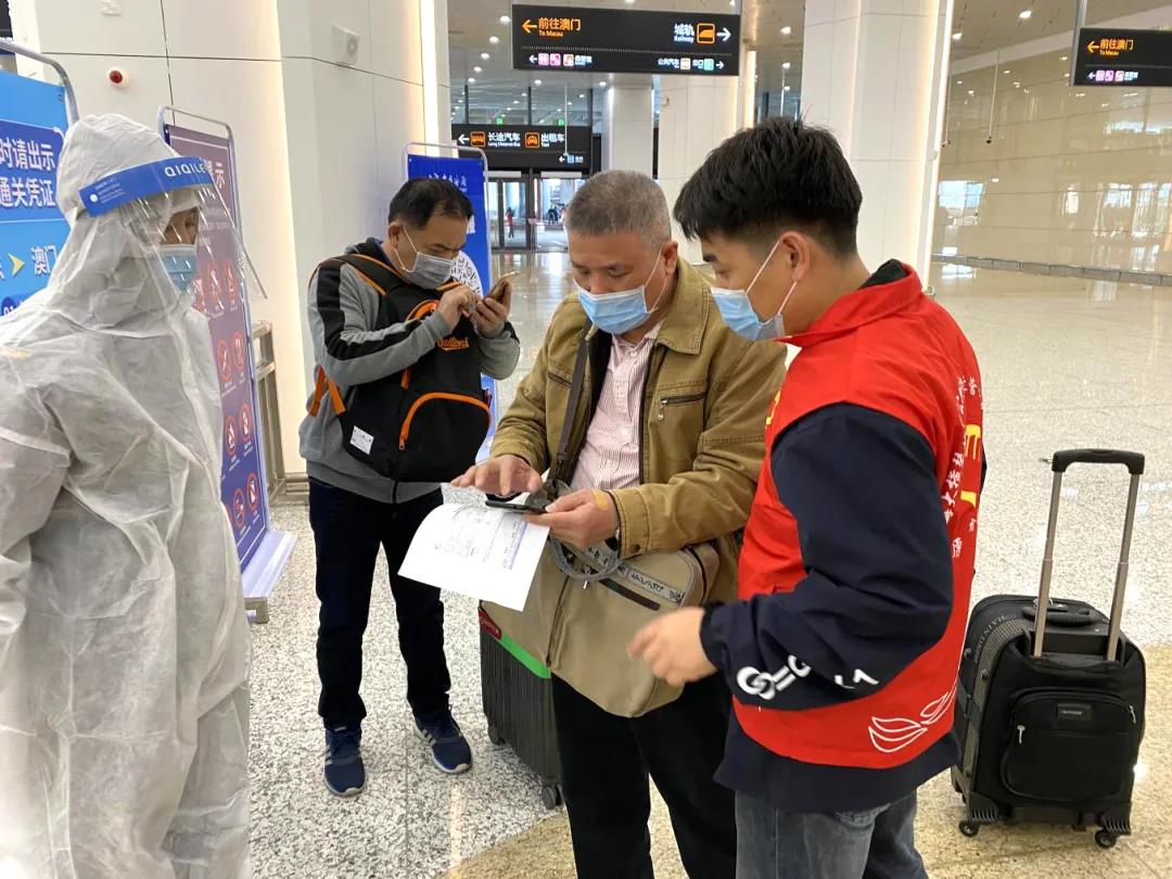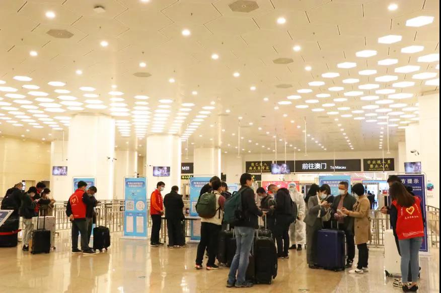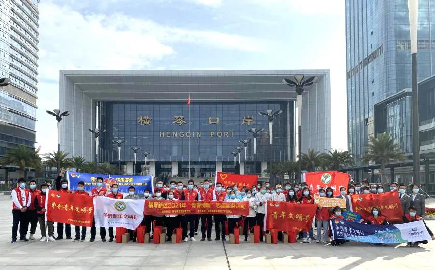 大橫琴管廊公司青年文明號等集體和其他單位團員青年組成的口岸志愿服務隊參與了此次志愿服務。